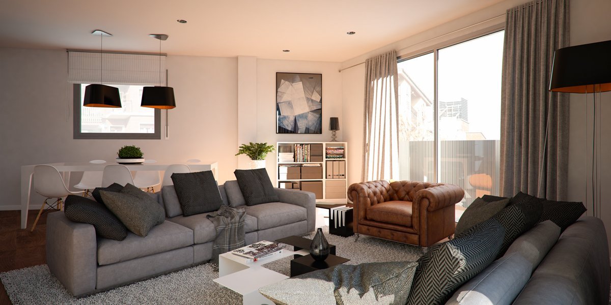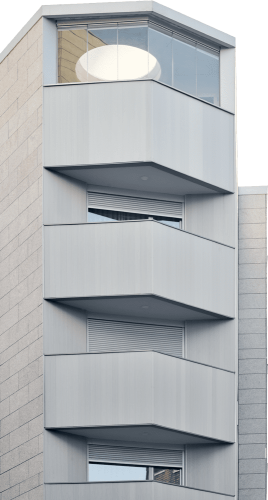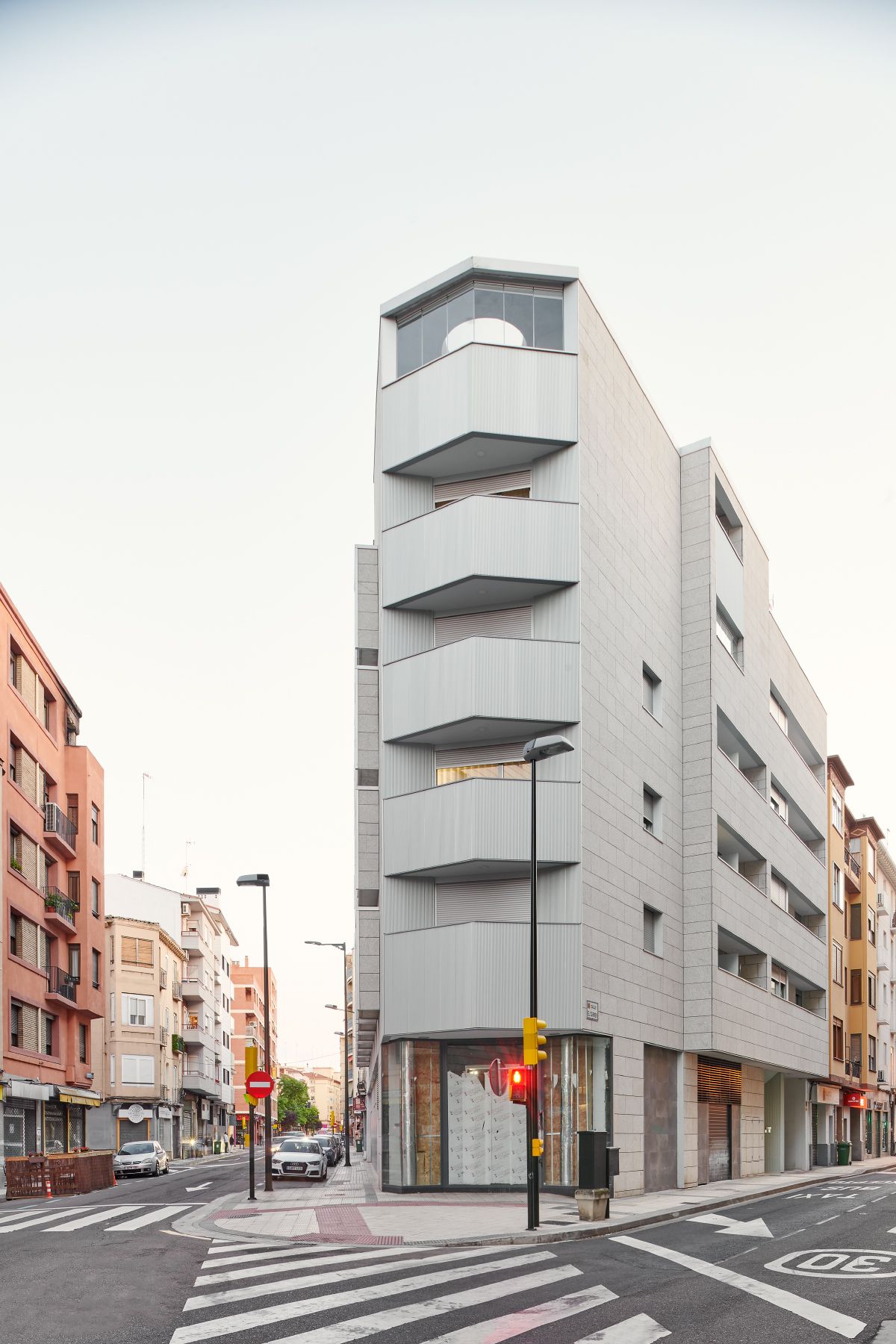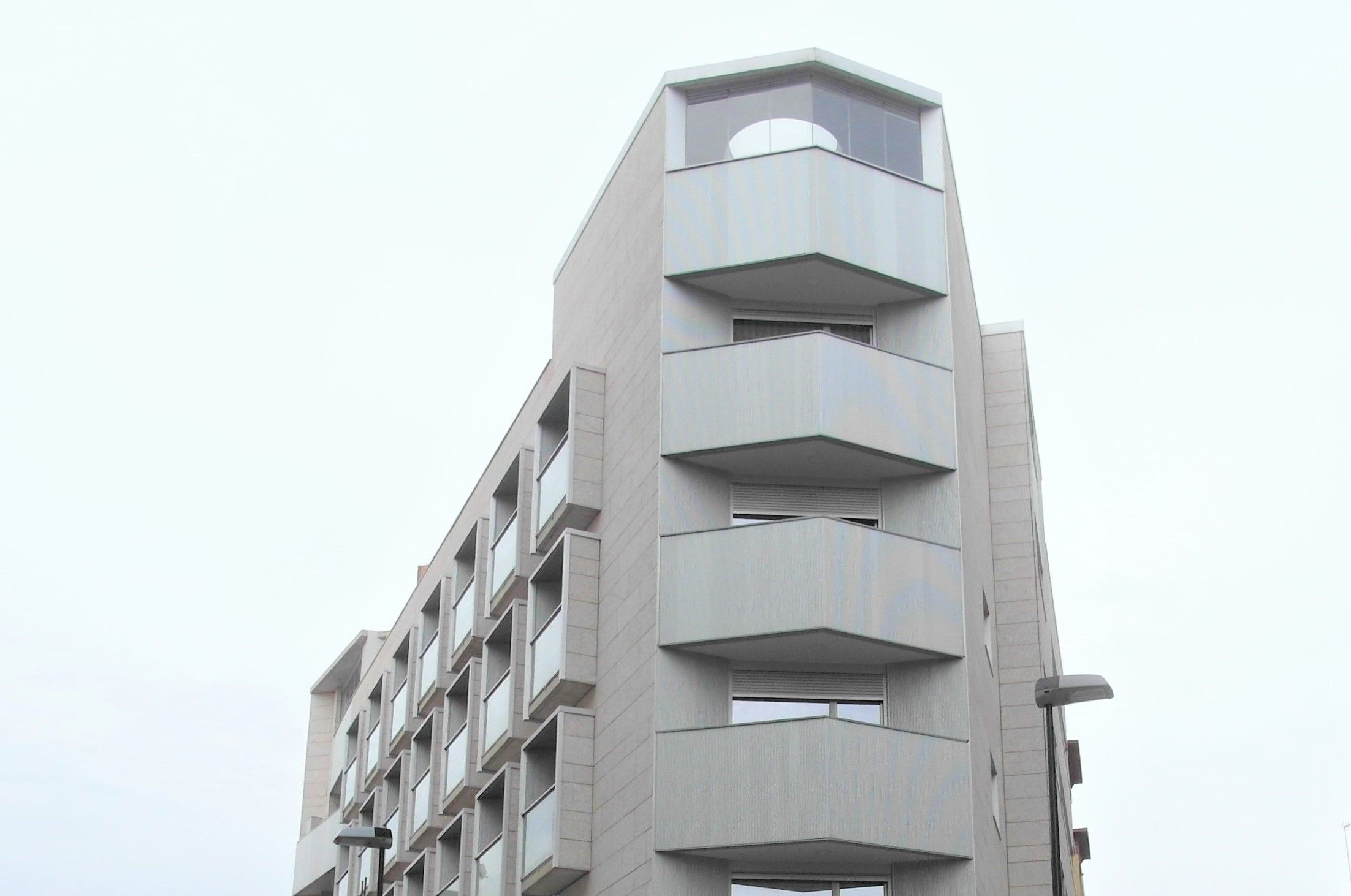 Esta promoción de 13 viviendas destaca por su innovador y moderno diseño y su fachada de granito silvestre.