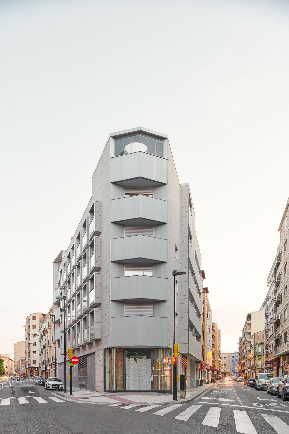 Se localiza enfrente de la conocida plaza Mariano Arregui, en el cruce entre la calle Carmen y el paseo Cortes de Aragón. Sus alineaciones determinan su afilado vértice y su llamativa geometría triangular.